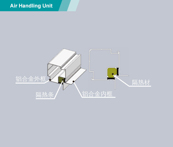 球速体育新一代MAH组合式空气处理机,艾洛斯(Aiolos)系列,采用防冷桥铝合金框架结构设计,面板与框架为压扣连接方式。